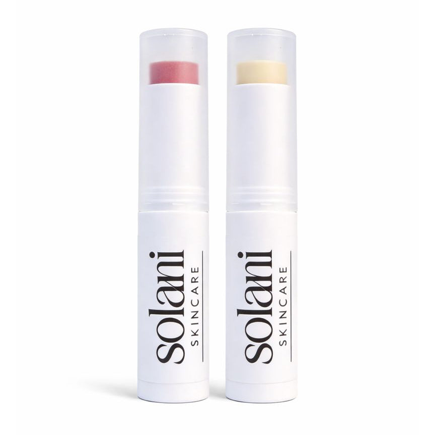 The Solani Lip Balm Duo brings together both of our signature formulas for complete, everyday lip care. Thoughtfully handcrafted in small batches, this duo features Vanilla Bliss for deep, comforting hydration and Minted & Tinted for a refreshing boost with a soft, natural flush of color.